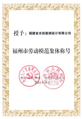 水投設計公司榮獲“福州市勞動模范集體”